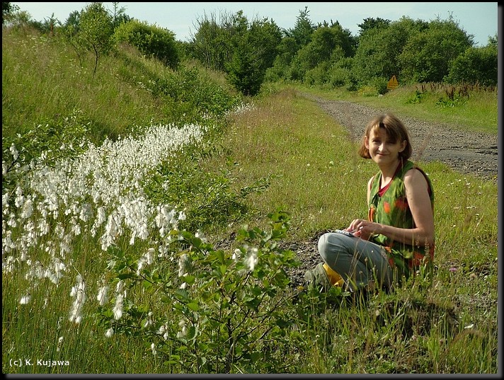 Pierwsze wyjście w teren po przyjeździe - uradowana Ania K. przy pasie wełnianki rosnącej w przydrożnym rowie. Przedsmak botanicznego bogactwa bieszczad.