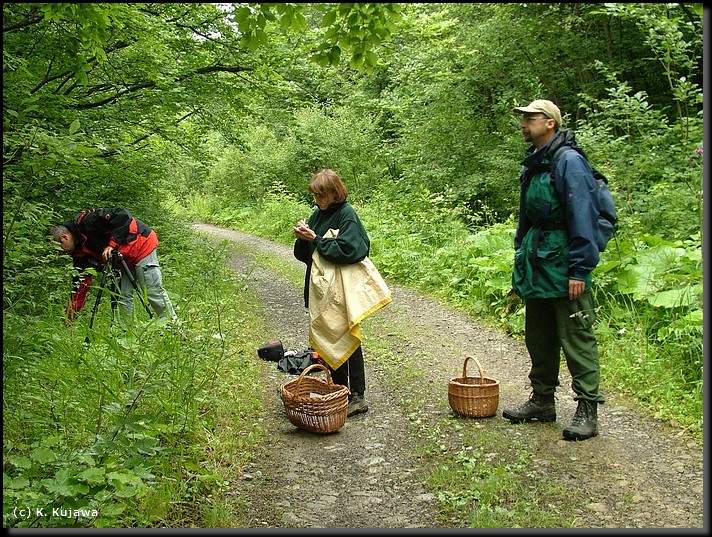 Typowy obrazek naszych grzybowych wypraw - Błażej, Ania i Andrzej w pełnej gotowości.