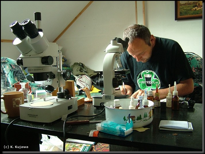 Druga część (a czasem i pierwsza..., gdy grzybów zebranych było wiele) doby, w naszej bazie w Wołosatem. Męki przy oznaczaniu grzybów.