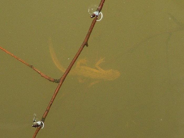 Traszka (Triturus sp.) w stawku pod Tarnicą.
