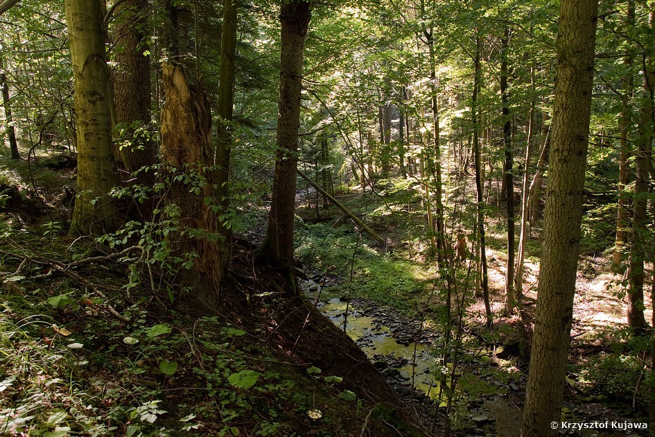 Przy gęstej roślinności trudno oddać na zdjęciu ukształtowanie terenu - okolice Hylatego wyróźniają się bardzo ostrymi stokami i głębokimi dolinami potoków