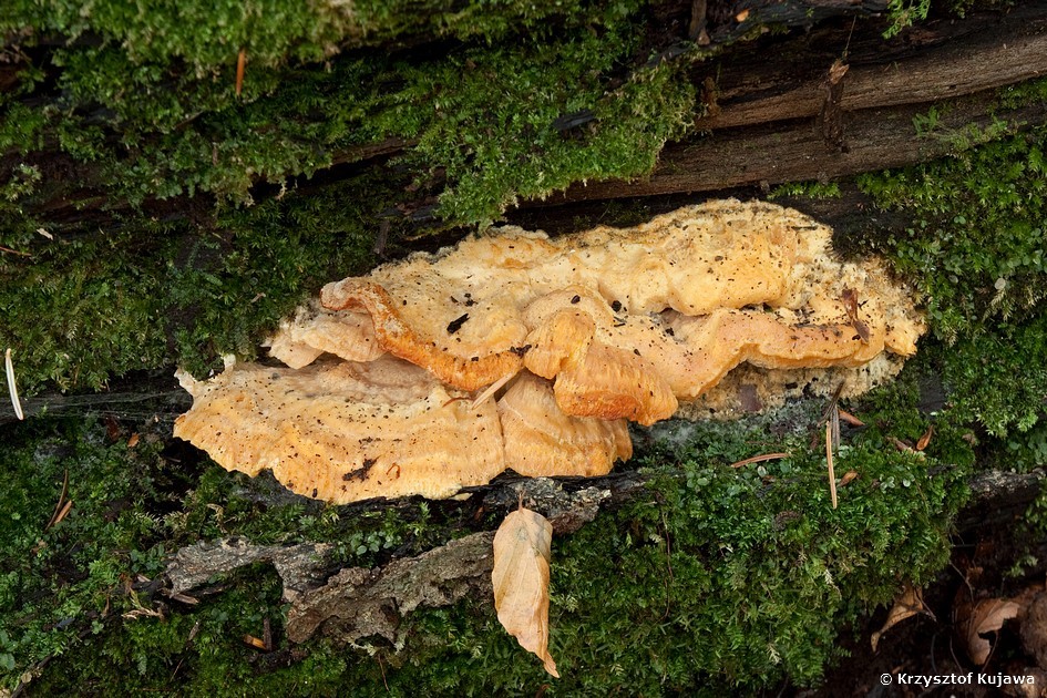 To nam wyglądało na starego pomarańczowca błyszczącego. Andrzej koryguje - to rzadkośc - Antrodiella pallescens