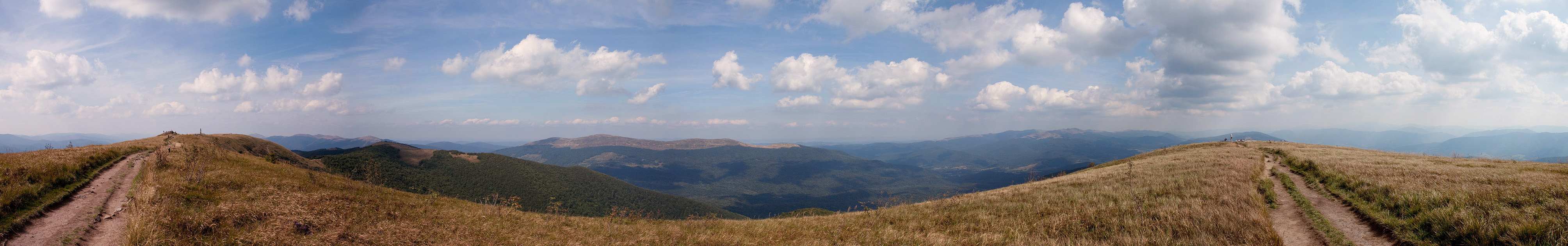 Widok z Wielkiej Rawki na północ (około 180 stopni) - w centralnej części widoczna Połonina Caryńska