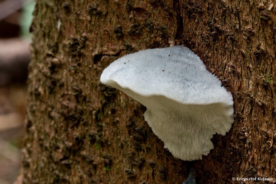 Drobnoporek modry (Oligoporus caesius) wykształcił ładny, młody owocnik