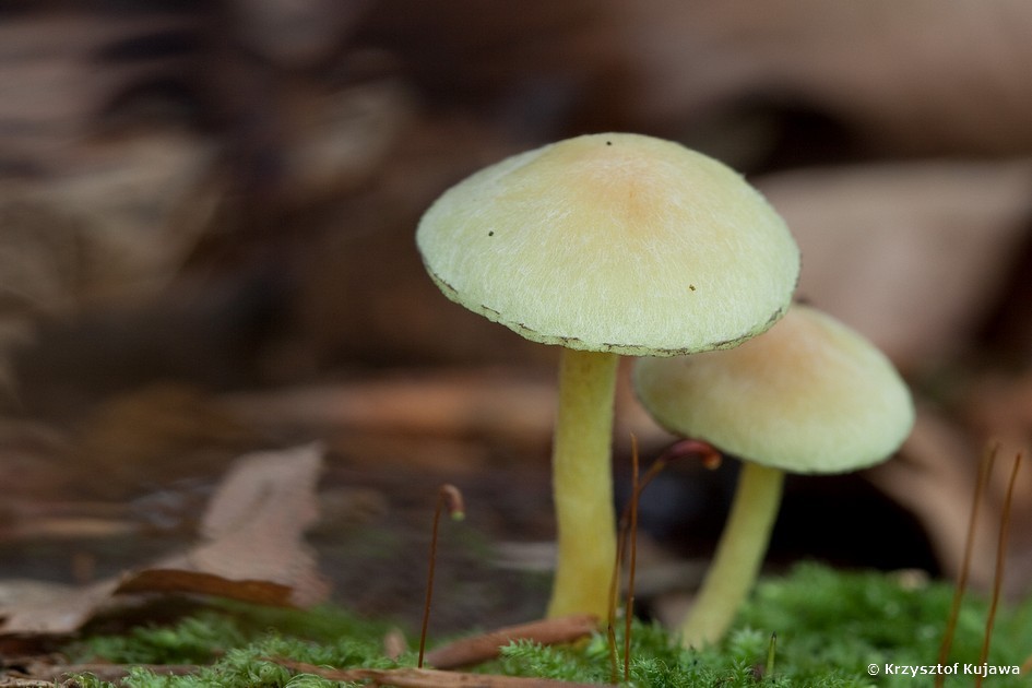 Maślanka zielonawa (Hypholoma subviridis) ma mniejsze owocniki od maślanki wiązkowej i zabarwione na żółtoseledynowy kolor