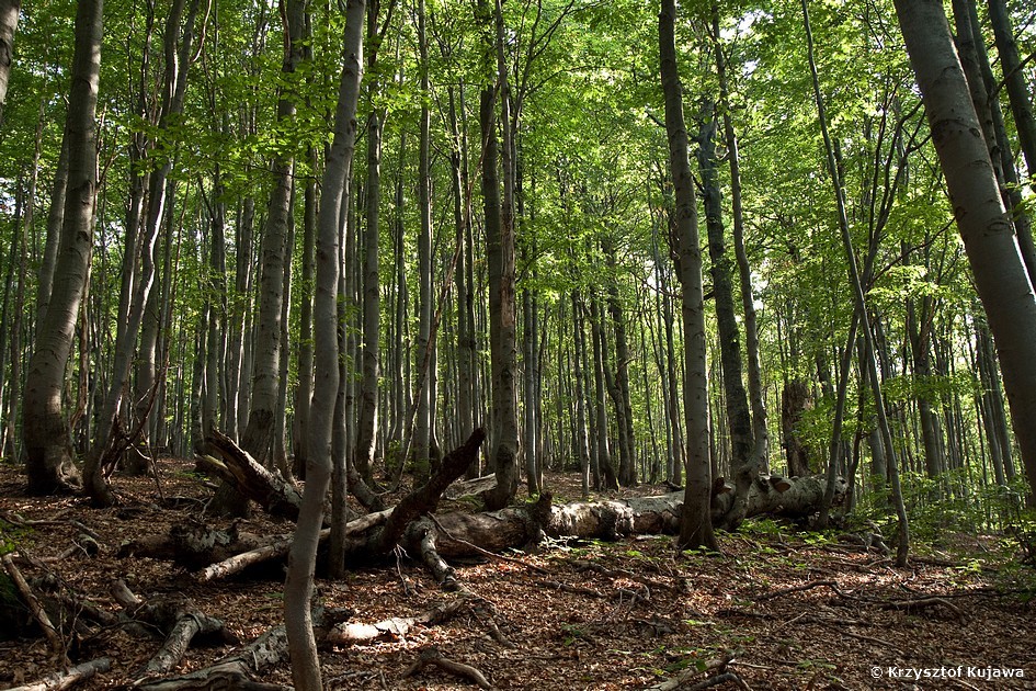 Buczyny porastające zbocza Rawki choć młode, to mają sporo martwego drewna