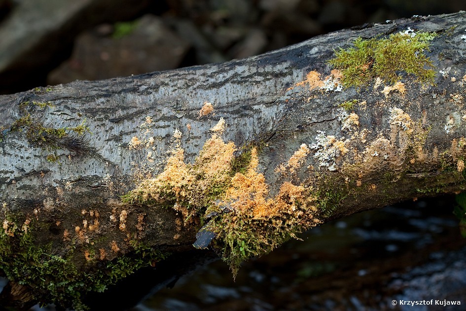Te jasne, punktowo rozmieszczone smugi "wiórów", to ślady żerowania jakichś owadów drewnojadów, czyli ksylofagów.