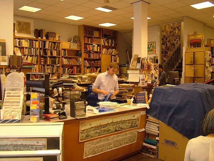 | Ogromnny antykwariat w Amsterdamie. Na zdjęciu jedynie jego fragment, a było jeszcze piętro zastawione regałami z książkami (w bazie danych mieli np. 250 książek dotyczących grzybów!), oraz miejsce zwykkle zamknięte, gdzie zgromadzono różne bardzo cenne tomy. Oj, na książki przyrodnicze mógłbym tam wydać majątek... A kurs PLN do Euro coraz lepszy... |