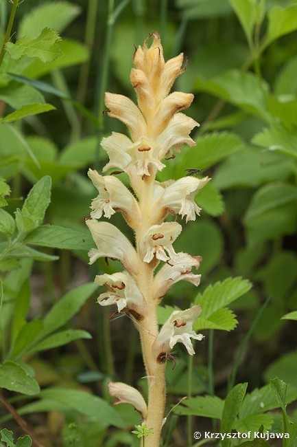 Zaraza (Orobanche sp.) - rzadki przykład rośliny bezzieleniowej, pasożytującej na innych roślinach