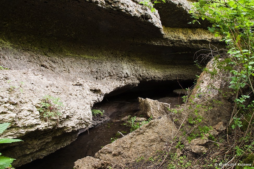 Przykład mini-wąwozu wypłukanego przez wodę, która następnie wpływa pod ziemię, żłobiąc sobie podziemne korytarze (przykład tzw. zjawisk krasowych)
