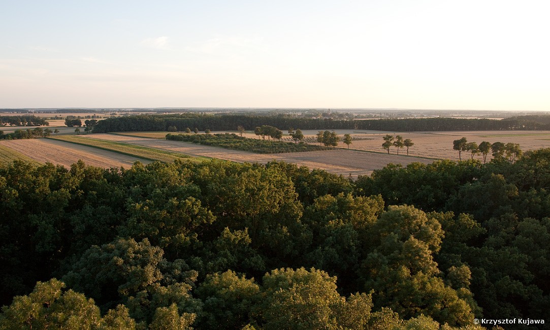 Spojrzenie na południowy zachód. Widoczna droga asfaltowa z Turwi do Kopaszewa. W oddali - w centralnej cześci - kościół w Wyskoci.