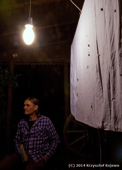 O właśnie - zestaw badawczy w komplecie: żarówka, ekran i ... pan Darek, bez którego nie wiedzilibyśmy, co lata po chalińskich lasach