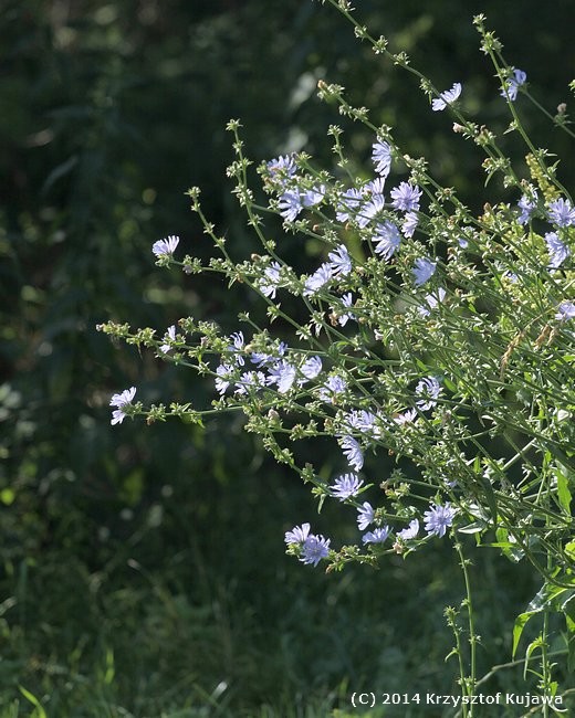Dorodne kępa cykorii podróżnika na - jak przystało wg nazwy - przydrożu.