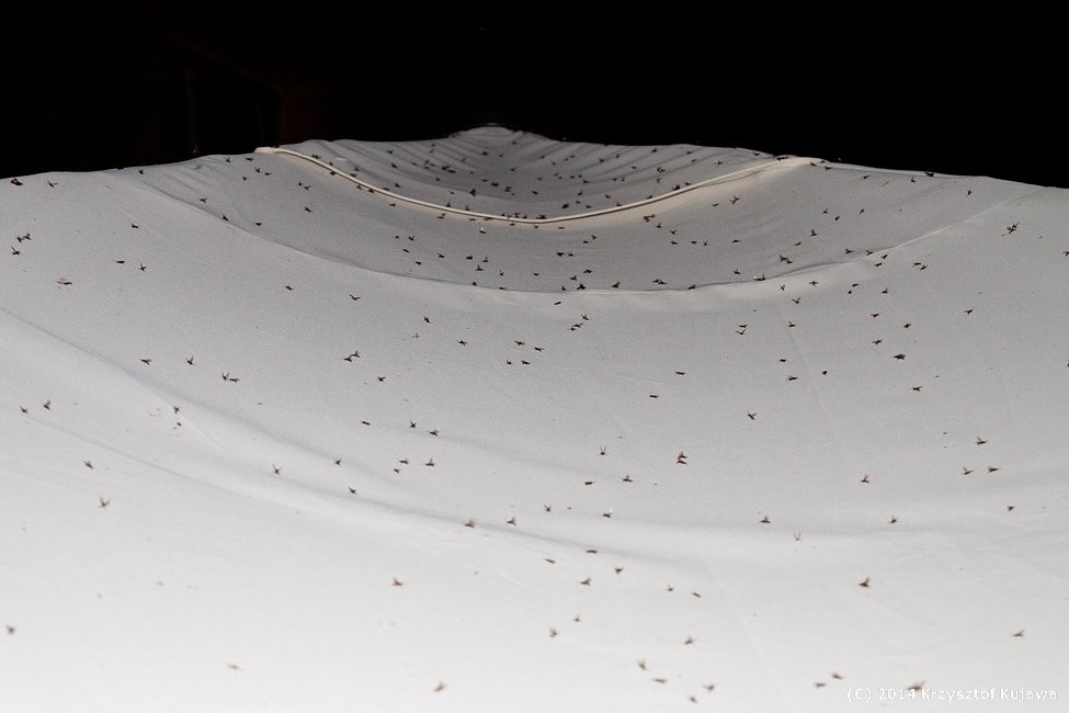 Rójka mrówek! Usiadły na parasolu rozstawionym przy dworku w Chalinie.