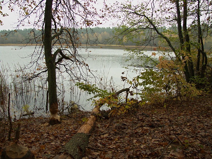 Wzdłuż brzegów jeziora natknęliśmy się na liczne miejsca żerowania bobrów.