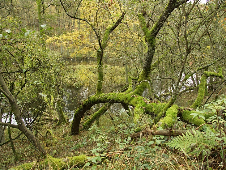 Zwalone drzewa, podmokły teren, pięknie, pięknie...