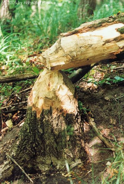 Ślady żerowania bobrów